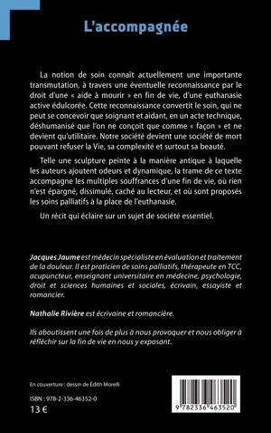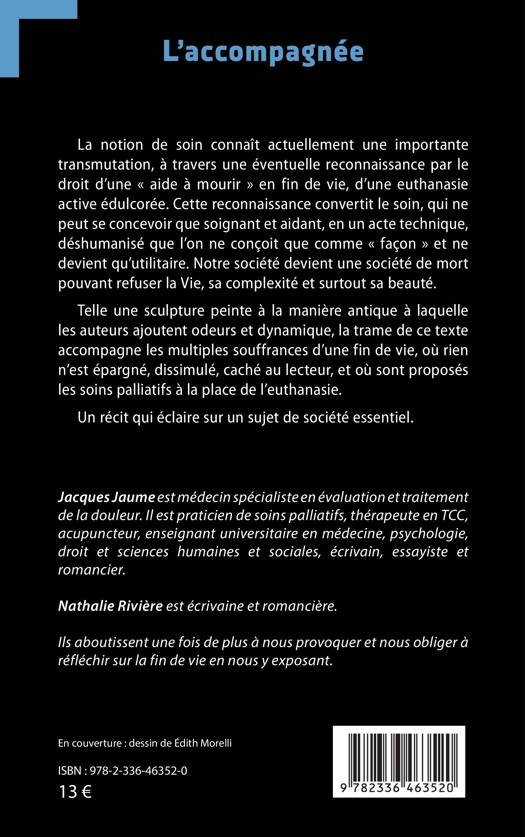 La notion de soin connaît actuellement une importante transmutation, à travers une éventuelle reconnaissance par le droit d’une « aide à mourir » en fin de vie, d’une euthanasie active édulcorée. Cette reconnaissance convertit le soin, qui ne peut se concevoir que soignant et aidant, en un acte technique, déshumanisé que l’on ne conçoit que comme « façon » et ne devient qu’utilitaire. Notre société devient une société de mort pouvant refuser la Vie, sa complexité et surtout sa beauté. Telle une sculpture peinte à la manière antique à laquelle les auteurs ajoutent odeurs et dynamique, la trame de ce texte accompagne les multiples souffrances d’une fin de vie, où rien n’est épargné, dissimulé, caché au lecteur, et où sont proposés les soins palliatifs à la place de l’euthanasie. Un récit qui éclaire sur un sujet de société essentiel.