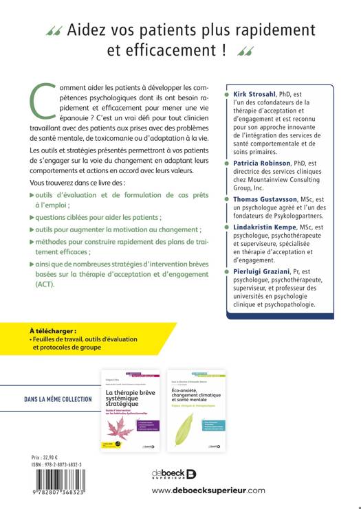 Les outils et stratégies présentés permettront à vos patients de s’engager sur la voie du changement en adaptant leurs comportements et actions en accord avec leurs valeurs.