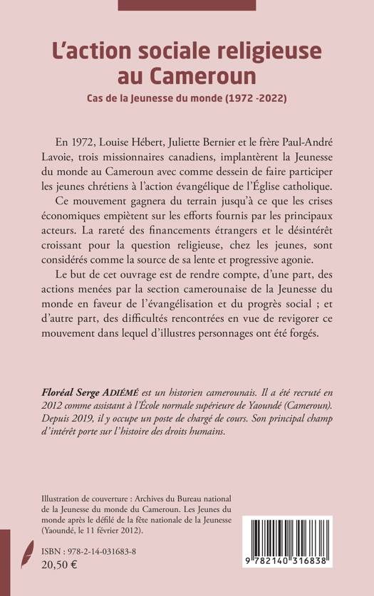 En 1972, Louise Hébert, Juliette Bernier et le frère Paul-André Lavoie, trois missionnaires canadiens, implantèrent la Jeunesse du monde au Cameroun avec comme dessein de faire participer les jeunes chrétiens à l'action évangélique de l'Église catholique. Ce mouvement gagnera du terrain jusqu'à ce que les crises économiques empiètent sur les efforts fournis par les principaux acteurs. La rareté des financements étrangers et le désintérêt croissant pour la question religieuse, chez les jeunes, sont considérés comme la source de sa lente et progressive agonie. Le but de cet ouvrage est de rendre compte, d'une part, des actions menées par la section camerounaise de la Jeunesse du monde en faveur de l'évangélisation et du progrès social; et d'autre part, des difficultés rencontrées en vue de revigorer ce mouvement dans lequel d'illustres personnages ont été forgés.