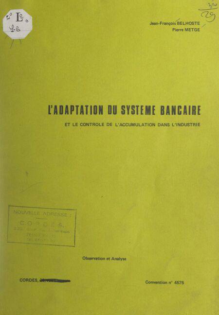 L'adaptation du système bancaire et le contrôle de l'accumulation dans l'industrie EBOOK