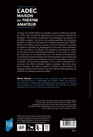 L’histoire de l’ADEC-Maison du théâtre amateur de Rennes, fondée en 1970, rend compte du dynamisme de la pratique théâtrale en Bretagne. Elle permet de dépasser les stéréotypes qui pèsent sur le théâtre amateur : loin d’une conception passéiste de la pratique amateur, au-delà d’un héritage lié au théâtre de patronage, l’ADEC-Maison du théâtre amateur a réussi à articuler éducation populaire et exigence artistique en développant la formation des animateurs et des comédiens, la diffusion du répertoire contemporain grâce à l’animation d’une bibliothèque théâtrale, et en créant un centre de ressources et de partenariat avec les artistes professionnels. L’ouvrage fait le récit historique de cette association qui a produit des rencontres humaines et artistiques autour d’une passion commune : le théâtre. Enrichi de témoignages et d’un cahier d’illustrations, il participe des efforts entrepris depuis quelques décennies pour écrire l’histoire du théâtre amateur. Il éclaire la structuration du paysage professionnel breton et les liens étroits entre pratiques en amateur et pratiques professionnelles.