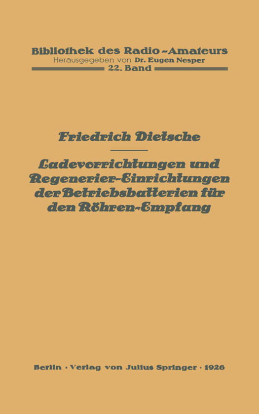 7. Ladevorrichtungen Und Regenerier-Einrichtungen Der Betriebsbatterien Für Den Röhren-Empfang