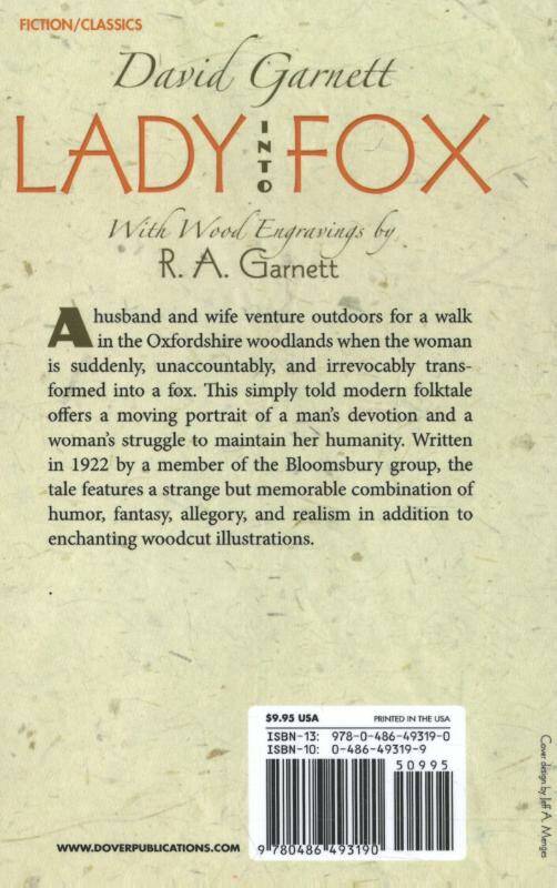 A husband and wife venture outdoors for a walk in the Oxfordshire woodlands when the woman is suddenly, unaccountably, and irrevocably transformed into a fox. This simply told modern folktale offers a moving portrait of a man's devotion and a woman's struggle to maintain her humanity. Written in 1922 by a member of the Bloomsbury group, the tale features a strange but memorable combination of humor, fantasy, allegory, and realism in addition to enchanting woodcut illustrations.