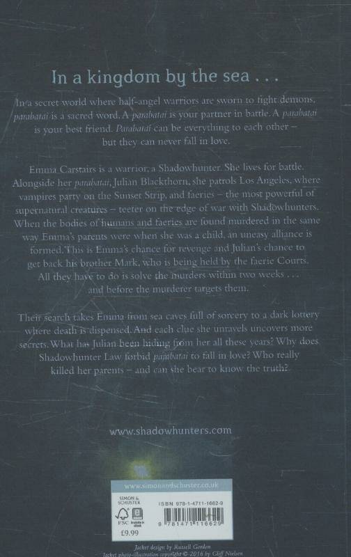 It's been five years since the events of City of Heavenly Fire that brought the Shadowhunters to the brink of oblivion. Emma Carstairs is no longer a child in mourning, but a young woman bent on discovering what killed her parents and avenging her losses. Together with her parabatai Julian Blackthorn, Emma must learn to trust her head and her heart as she investigates a demonic plot that stretches across Los Angeles, from the Sunset Strip to the enchanted sea that pounds the beaches of Santa Monica. If only her heart didn't lead her in treacherous directions...Making things even more complicated, Julian's brother Mark-who was captured by the faeries five years ago-has been returned as a bargaining chip. The faeries are desperate to find out who is murdering their kind-and they need the Shadowhunters' help to do it. But time works differently in faerie, so Mark has barely aged and doesn't recognize his family. Can he ever truly return to them? Will the faeries really allow it? Glitz, glamours, and Shadowhunters abound in this heartrending opening to Cassandra Clare's Dark Artifices series.