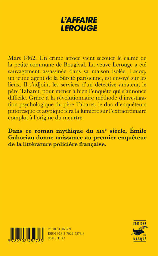 Dans ce roman mythique du xixe siècle, Émile Gaboriau donne naissance au premier enquêteur de la littérature policière française.