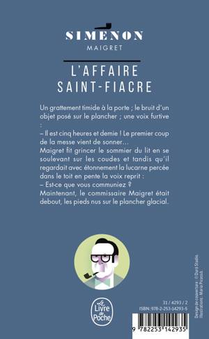 Un grattement timide à la porte; le bruit d'un objet posé sur le plancher; une voix furtive: « Il est cinq heures et demie ! Le premier coup de la messe vient de sonner... » Maigret fit grincer le sommier du lit en se soulevant sur les coudes et tandis qu'il regardait avec étonnement la lucarne percée dans le toit en pente, la voix reprit: « Est-ce que vous communiez ? » Maintenant, le commissaire Maigret était debout, les pieds nus sur le plancher glacial. lI marcha vers la porte qui fermait à I'aide d'une ficelle enroulée à deux clous. lI y eut des pas qui fuyaient, et, quand il fut dans le couloir, il eut juste le temps d'apercevoir une silhouette de femme en camisole et en jupon blanc. Alors il ramassa le broc d'eau chaude que Marie Tatin lui avait apporté, ferma sa porte, chercha un bout de miroir devant lequel se raser.