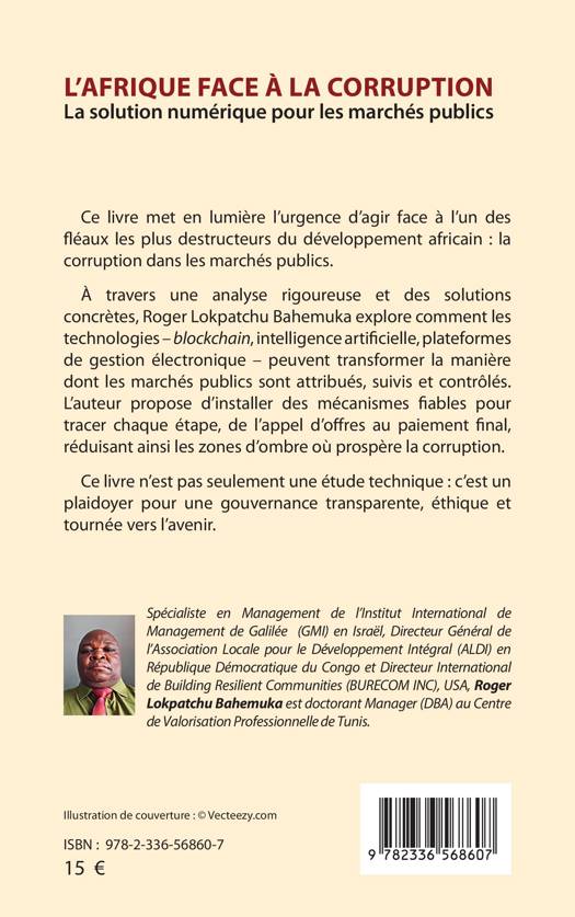 Ce livre met en lumière l'urgence d'agir face à l'un des fléaux les plus destructeurs du développement africain: la corruption dans les marchés publics. À travers une analyse rigoureuse et des solutions concrètes, Roger Lokpatchu Bahemuka explore comment les technologies - blockchain, intelligence artificielle, plateformes de gestion électronique - peuvent transformer la manière dont les marchés publics sont attribués, suivis et contrôlés. L'auteur propose d'installer des mécanismes fiables pour tracer chaque étape, de l'appel d'offres au paiement final, réduisant ainsi les zones d'ombre où prospère la corruption. Ce livre n'est pas seulement une étude technique: c'est un plaidoyer pour une gouvernance transparente, éthique et tournée vers l'avenir.