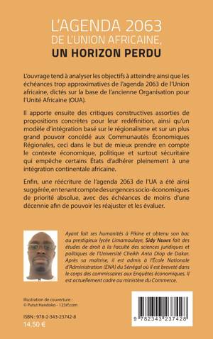 L’ouvrage tend à analyser les objectifs à atteindre ainsi que les échéances trop approximatives de l’agenda 2063 de l’Union africaine, dictés sur la base de l’ancienne Organisation pour l’Unité Africaine (OUA). Il apporte ensuite des critiques constructives assorties de propositions concrètes pour leur redéfinition, ainsi qu’un modèle d’intégration basé sur le régionalisme et sur un plus grand pouvoir concédé aux Communautés Économiques Régionales. Enfin, une réécriture de l’agenda 2063 de l’UA a été ainsi suggérée, en tenant compte des urgences socio-économiques de priorité absolue, avec des échéances de moins d’une décennie afin de pouvoir les réajuster et les évaluer.