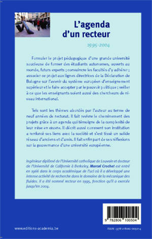 L'auteur a dirigé durant neuf ans une grande université européenne. Utilisant l'agenda pour décrire le cheminement des projets et la complexité de leur mise en uvre, il aborde les questions majeures de l'enseignement supérieur en ce début de siècle : la manière d'apprendre, le processus de Bologne, la recherche scientifique, le renforcement des liens de l'université avec les anciens et avec les entreprises, le mécénat ou encore la gouvernance nécessaire pour rassembler les enseignants autour d'un projet commun.