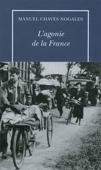 En 1936, pressentant la défaite du camp républicain dont il fut l'un des plus ardents défenseurs, Manuel Chaves Nogales quitte l'Espagne pour s'installer en France. Quatre ans plus tard, la France capitule devant l'armée allemande : cet antifasciste convaincu voit alors se rouvrir les blessures, mal cicatricées, que lui avait infligées la guerre d'Espagne. Souvent comparé, pour la pertinence de ses analyses et l'âpreté de son constat, à L'Étrange Défaite de Marc Bloch, rédigé à la même période, L'Agonie de la France éclaire du précieux point de vue d'un étranger ce qui constitue encore le grand trauma de la mémoire française. Plaidoyer poignant, fracassante pièce à conviction, ce livre est un hommage en creux à l'autre France, la patrie de ceux qui, à l'instar de cet intellectuel incorruptible et passionné, ont refusé de baisser les bras devant la barbarie.