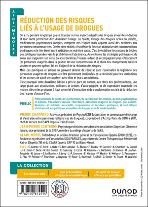 Ce document contribue à la formation et à la réflexion pratique, éthique et sociale des professionnels (médecins, psychologues, travailleurs sociaux, etc.) qui travaillent dans le domaine des addictions. La politique de réduction des risques vise à prévenir les dommages liés à une pratique addictive et à améliorer l'accès aux soins des usagers.