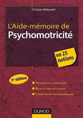 La psychomotricité est une pratique professionnelle au carrefour du psychologique, de l'éducatif et du paramédical. On y a recourt dans les crèches, les maternités, les services de pédiatrie, mais aussi en psychiatrie ou en gériatrie... Cet aide-mémoire est un outil présentant rapidement toutes les informations indispensables sur cette pratique, les concepts fondamentaux, les pathologies concernées par le champ du psychomotricien et les pratiques adaptées. Cette nouvelle édition comporte de nombreuses mises à jour , ainsi qu'une bibliographie entièrement actualisée.