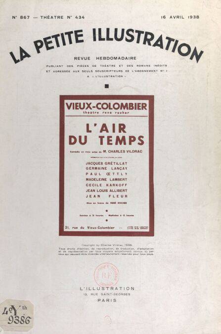 Comédie en trois actes, représentée pour la première fois le 23 février 1938, au théâtre du Vieux-Colombier (Théâtre René Rocher)