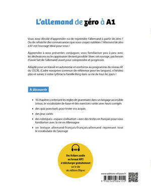 Cet ouvrage, spécialement conçu pour tous ceux qui souhaitent apprendre l’allemand à partir de zéro, convient également à ceux qui souhaitent rafraîchir des connaissances qu’ils croient avoir oubliées.