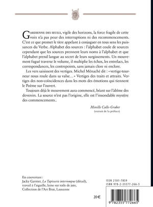 « La source n’est pas l’origine, elle est l’insondable mystère des commencements.. » Ce deuxième volume des Œuvres Poétiques de Michel Ménaché, restitue le parcours de 30 années de poésie (1965-1994). Le volume est préfacé par Mireille Calle-Gruber : « Gardienne des seuils, vigile des horizons, la force fragile de cette voix n’a pas peur des interruptions ni des recommencements. Un mouvement fugué traverse le volume, il multiplie les échos, les entrelacs, les correspondances, les contrepoints, sans jamais clore ni enclore. Les vers saisissent des vertiges des traits et attraits, vertiges des non-coïncidences dans les mots des émotions qui tiennent le Poème sur l’ouvert. La source n’est pas l’origine, elle est l’insondable mystère des commencements.. » Recueils publiés en larges extraits : Pavés et fenêtres (1965-1967), Crocs-accrocs (1981), Fable des matières (1981-1983), Célébration de l’oeuf (1992), La semaine des 40 haïkus (1991), Ascension du silence (1992), Goudron de nuit (1994), Claquemuraille (1985), Ectoplasme à plumes rouges et bonnet de nuit (1991).