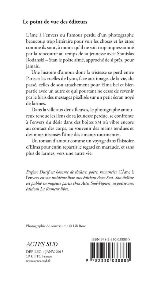 L'âme à l'envers ou l'amour perdu d'un photographe beaucoup trop littéraire pour voir les choses et les êtres comme ils sont, à moins qu'il ne soit trop impressionné par la rencontre au temps de sa jeunesse avec Stanislas Rodanski - Stan le poète aimé, approché de si près, pour jamais.