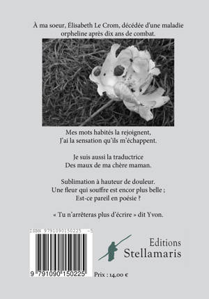 À ma soeur, Élisabeth Le Crom, décédée d’une maladie orpheline après dix ans de combat.