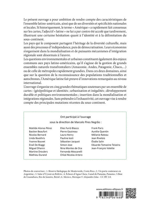 Le présent ouvrage a pour ambition de rendre compte des caractéristiques de l’ensemble latino-américain, ainsi que de ses diversités et spécificités nationales et locales. Si historiquement, le terme « Amérique » a rapidement fait consensus sur les cartes, l’adjectif « latine » ne lui a par contre été accolé que tardivement, illustrant une certaine hésitation quant à l’identité et à la délimitation du sous-continent.