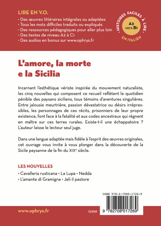 Ce recueil propose au lecteur de découvrir l’œuvre de l’écrivain vériste Giovanni Verga (1840-1922). L’amour et la mort sont, bien entendu, les grands protagonistes de ces récits. Mais l’île dans laquelle se déroulent ces histoires est également marquée par la violence et par la pauvreté de ses habitants, par les conventions sociales et par son univers de croyances archaïques. Ce sont tous ces thèmes que le lecteur retrouvera réunis dans ce recueil de nouvelles qui dresse un tableau vivant de la Sicile paysanne de la fin du XIXe siècle.