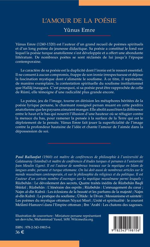 Yûnus Emre (1240-1320) naît l'année où meurt ibn 'Arabî, le grand maître andalou qui a révolutionné la pensée dans le cadre du soufisme. Il est l'auteur d'un grand recueil de poèmes spirituels et d'un long poème de jeunesse didactique qui ont constitué le fond sur lequel la poésie turque anatolienne s'est développée. Il représente de manière exemplaire la contestation spirituelle du soufisme institutionnel que Hallâj inaugura. C'est pourquoi, si sa poésie peut être rapprochée de celle de Rûmî, elle témoigne d'une radicalité plus grande encore. Il frappe de son ironie irrespectueuse, déjouant a fascination mystique dont s'alimente le soufisme et chante l'amour de l'aimée dans la dépossession de soi.