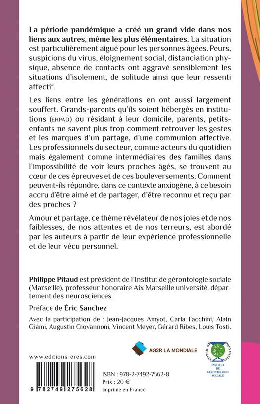 La période pandémique dont on ne connaît pas la fin a mis à mal, d’une part, l’expression des sentiments comme les échanges amoureux dans leur diversité physico-psychique et, d’autre part, la restitution comme le partage de l’amour reçu aux parents âgés qu’ils soient hébergés en institutions (Ehpad) ou résidant à leur domicile. Les liens entre les générations souffrent également des mesures de distanciation et parents, grands-parents, petits-enfants se savent plus trop quelle démarche adopter pour retrouver les gestes et les marques d’un partage, d’une communion affective d’un passé pourtant proche, mais qui semble suspendu à une échéance encore indéterminée. Par ailleurs, les confinements ont mis les couples face à de nouvelles situations, les obligeant à réinventer des pratiques éprouvées voire routinières, mais désormais exposées à des effets secondaires pesant sur leur quotidien, souvent dans des espaces plus ou moins réduits ; dans tous les cas et en grande majorité, non initialement prévus pour une vie à deux ou plus, en continue. Comme le notent G. Ribes et M. Veluire, (2019) « Chez les couples vieillissants, dans un contexte de réorganisation domestique qui ne laisse pas suffisamment d’espace intime à chacun, peut naître un sentiment d’enfermement, d’envahissement, d’intrusion, voire un rejet de l’autre. Les remparts spontanés (travail, enfants) créant des espaces/temps différents et nourrissant les membres du couple ne sont plus présents. Chacun se retrouve sous le regard de l’autre, et peut se sentir observé, scruté au quotidien, y compris dans ce qui n’est pas fait, dans ce qui aurait dû l’être, dans ce qui devrait être ».
