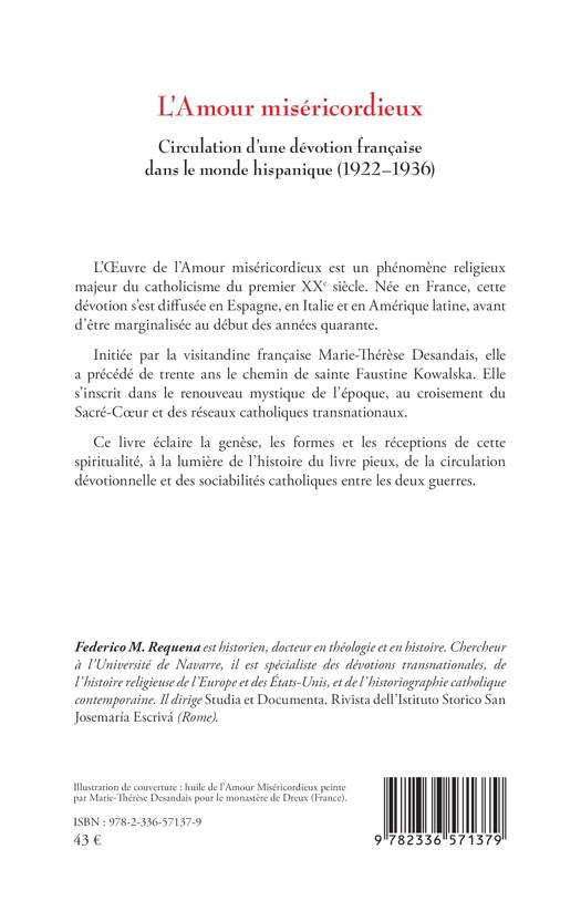 L'OEuvre de l'Amour miséricordieux est un phénomène religieux majeur du catholicisme du premier XXe siècle. Née en France, cette dévotion s'est diffusée en Espagne, en Italie et en Amérique latine, avant d'être marginalisée au début des années quarante. Initiée par la visitandine française Marie-Thérèse Desandais, elle a précédé de trente ans le chemin de sainte Faustine Kowalska. Elle s'inscrit dans le renouveau mystique de l'époque, au croisement du Sacré-Coeur et des réseaux catholiques transnationaux. Ce livre éclaire la genèse, les formes et les réceptions de cette spiritualité, à la lumière de l'histoire du livre pieux, de la circulation dévotionnelle et des sociabilités catholiques entre les deux guerres.