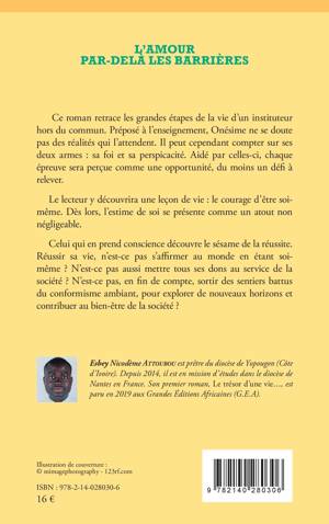 Ce roman retrace les grandes étapes de la vie d'un instituteur hors du commun. Préposé à l'enseignement, Onésime ne se doute pas des réalités qui l'attendent. Il peut cependant compter sur ses deux armes : sa foi et sa perspicacité. Aidé par celles-ci, chaque épreuve sera perçue comme une opportunité, du moins un défi à relever. Le lecteur y découvrira une leçon de vie : le courage d'être soi-même. Dès lors, l'estime de soi se présente comme un atout non négligeable. Celui qui en prend conscience découvre le sésame de la réussite. Réussir sa vie, n'est-ce pas s'affirmer au monde en étant soi-même ? N'est-ce pas aussi mettre tous ses dons au service de la société ? N'est-ce pas, en fin de compte, sortir des sentiers battus du conformisme ambiant, pour explorer de nouveaux horizons et contribuer au bien-être de la société ?