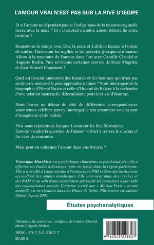 Et si l'amour ne dépendait pas de l'oedipe mais de la relation originelle tissée avec la mère ? Et s'il existait un autre amour délesté de notre histoire ? Traversons les mythes et les périodes grecque et romaine. Allons à la rencontre de l'amour dans l'art avec Camille Claudel et Auguste Rodin. Quel est l'avenir amoureux des Hommes qui n'ont pas eu de terre maternelle pour apprendre à aimer ? Nous interrogerons la biographie d'Hervé Bazin et celle d'Honoré de Balzac à la recherche d'une relation maternelle déterminante pour leur vie d'homme. Nous ferons un détour du côté de différentes correspondances pour y interroger le trio amoureux. Puis nous rejoindrons Jacques Lacan sur les îles Borromées. Ensuite viendra la question de l'amour virtuel à travers le cinéma et les sites de rencontre. Mais peut-on enfermer l'amour dans une théorie?