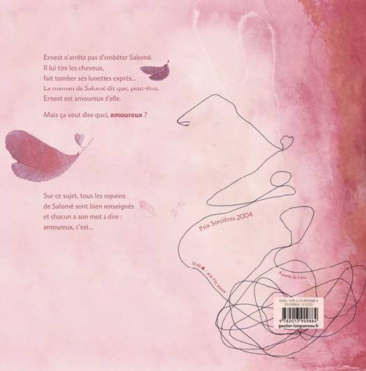 Salomé ne sait pas quoi penser: alors qu'à la récré, Ernest fait toujours tout pour l'embèter, sa maman lui dit que c'est peut-ètre parce qu'il est amoureux d'elle ! Mais ça veut dire quoi, amoureux ? Tous ses copains viennent à son secours et lui donnent leurs définitions d'un amoureux...