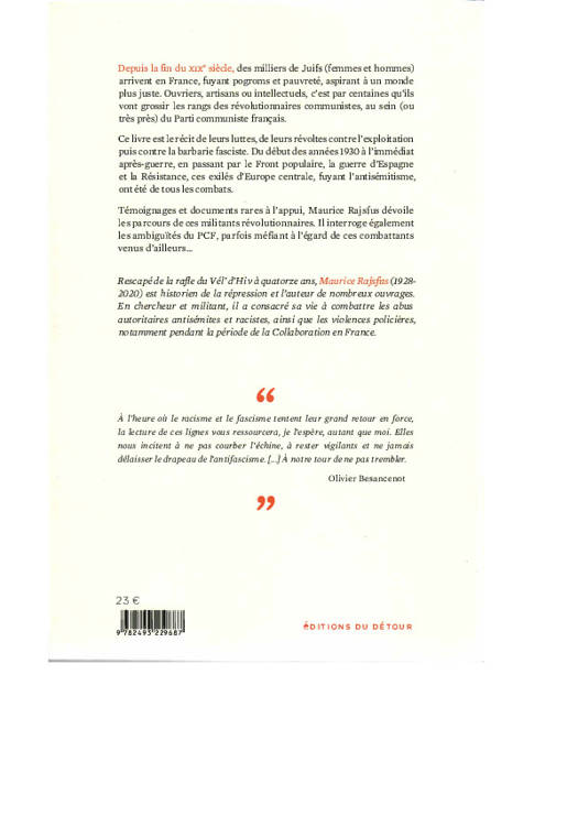 Témoignages et documents rares à l’appui, Maurice Rajsfus dévoile les parcours de ces militants révolutionnaires. Il interroge également les ambiguïtés du PCF, parfois méfiant à l’égard de ces combattants venus d’ailleurs...