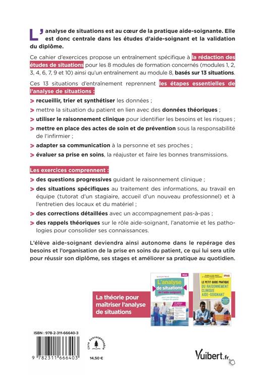 L'élève aide-soignant deviendra ainsi autonome dans le repérage des besoins et l'organisation de la prise en soins du patient, ce qui lui sera utile pour réussir son diplôme, ses stages et améliorer sa pratique au quotidien.