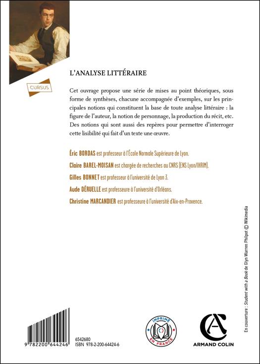 Cet ouvrage propose une série de mises au point théoriques, sous forme de synthèses, chacune accompagnée d'exemples, sur les principales notions qui constituent la base de toute analyse littéraire : la figure de l'auteur, la notion de personnage, la production du récit, etc. Des notions qui sont aussi des repères pour permettre d'interroger cette lisibilité qui fait d'un texte une œuvre.