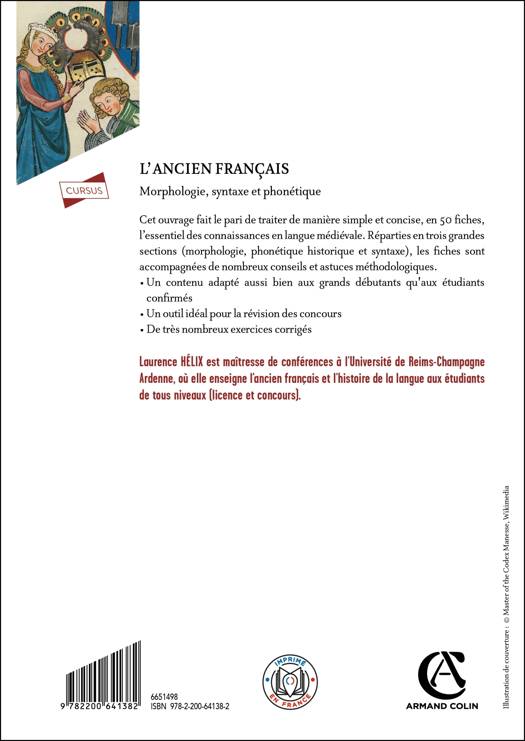 Cet ouvrage fait le pari de traiter de manière simple et concise, en 50 fiches, l’essentiel des connaissances en langue médiévale. Réparties en trois grandes sections (morphologie, phonétique historique et syntaxe), les fiches sont accompagnées de nombreux conseils et astuces méthodologiques.