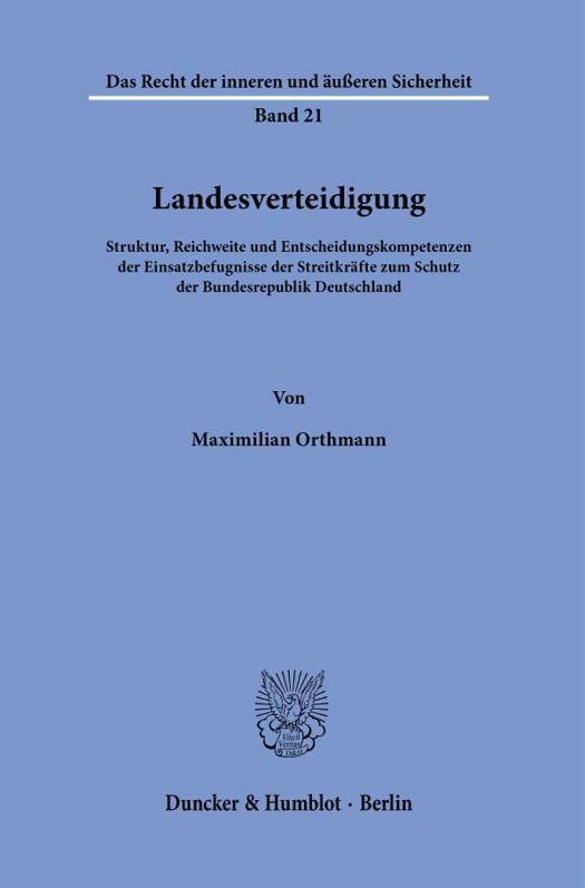 English summary: National Defense. Structure, Scope and Decision-Making Competences of the Armed Forces for the Protection of the Federal Republic of Germany Recent or resurgent threat scenarios, such as terrorism, cyberwarfare or new ones as the Russian war of aggression cause necessity to constantly re-examine the concept of defense and its accompanying additional competences of the German armed forces. For this purpose, the operational powers are concretized in an individual and overall systematic view. Additionally the review is framed by a consideration of the corresponding decision-making competences. German description: Elementare Pfeiler der Sicherheitsarchitektur der Bundesrepublik Deutschland stellen die Streitkrafte dar. Deren Einsatzbefugnisse ergeben sich sowohl aus dem Begriff der Verteidigung als auch aus den flankierenden Normen der Folgeabsatze des Art. 87a GG und des Art. 35 GG. Doch wie verhalten sich die Einsatzbefugnisse zueinander? Und welche Stelle entscheidet uber Vorliegen der Merkmale einer jeweiligen Einsatzbefugnis? Insbesondere das systematische Verhaltnis der Einsatzbefugnisse zueinander, wie auch der einzelnen Tatbestandsmerkmale zueinander, wird beleuchtet. Hierdurch wird ein Gesamtuberblick uber die Wehrverfassung geschaffen, der sich nicht nur auf eine einzelne Einsatzbefugnis begrenzt, sondern das Gesamtsystem der Einsatzbefugnisse in ihrer Struktur darstellt. Zusatzlich werden die korrespondierenden Entscheidungskompetenzen und deren Verhaltnis zueinander berucksichtigt.