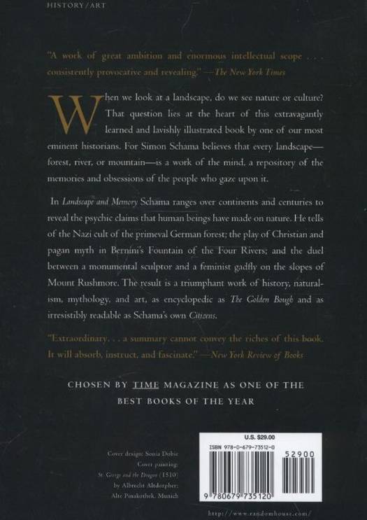 Landscape and Memory, award-winning author Simon Schama ranges over continents and centuries to reveal the psychic claims that human beings have made on nature. He tells of the Nazi cult of the primeval German forest; the play of Christian and pagan myth in Bernini's Fountain of the Four Rivers; and the duel between a monumental sculptor and a feminist gadfly on the slopes of Mount Rushmore. The result is a triumphant work of history, naturalism, mythology, and art, as encyclopedic as