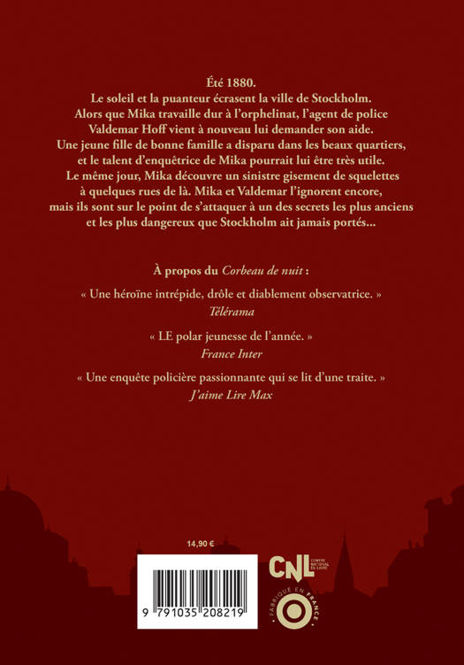 Été 1880. Le soleil et la puanteur écrasent la ville de Stockholm. Alors que Mika travaille dur à l'orphelinat, l'agent de police Valdemar Hoff vient à nouveau lui demander son aide. Une jeune fi lle de bonne famille a disparu dans les beaux quartiers, et le talent d'enquêtrice de Mika pourrait lui être très utile. Le même jour, Mika découvre un sinistre gisement de squelettes à quelques rues de là. Mika et Valdemar l'ignorent encore, mais ils sont sur le point de s'attaquer à un des secrets les plus anciens et les plus dangereux que Stockholm ait jamais portés...