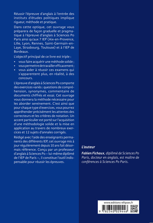 Cet ouvrage prépare de façon graduelle et pragmatique à l’épreuve d’anglais à Sciences Po Paris et des IEP. Il offre aux candidats une méthode solide et un entrainement efficace pour réussir l'épreuve d'anglais grâce à :