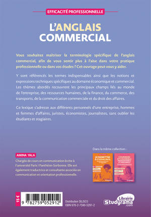 Vous souhaitez maîtriser la terminologie spécifique de l’anglais commercial, à l’oral comme à l’écrit, afin de vous sentir plus à l’aise dans votre pratique professionnelle ou dans vos études ? Cet ouvrage peut vous y aider.