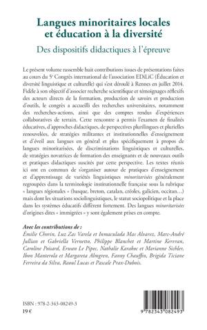 Les textes réunis ici ont en commun de s'organiser autour de pratiques d'enseignement et d'apprentissage de variétés linguistiques minoritarisées généralement regroupées dans la terminologie institutionnelle française sous la rubrique « langues régionales » (basque, breton, catalan, créole...) mais dont les situations sociolinguistiques, le statut sociopolitique et la place dans les systèmes éducatifs diffèrent fortement. Des langues d'origine "immigrées" y sont également prises en compte.