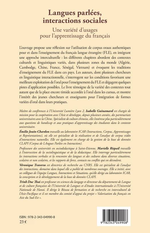 Voici une réflexion sur l'utilisation de corpus oraux pour l'enseignement du français langue étrangère (FLE), en intégrant une approche interculturelle : les différents chapitres abordent des contextes culturels et linguistiques variés, dans plusieurs zones du monde comme l'Algérie, Cambodge, Chine, France, Sénégal, Vietnam et évoquent les traditions d'enseignement du FLE dans ces pays. Les auteurs s'interrogent sur les conditions favorisant une meilleure exploitation de l'oral pour l'enseignement du FLE et dégagent quelques pistes d'application possibles.