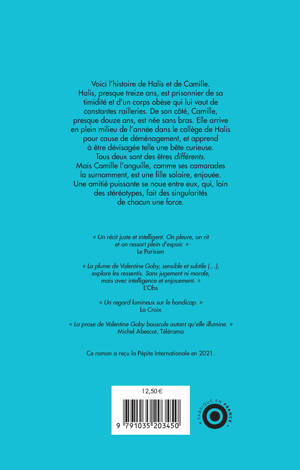 Camille est née sans bras. Avant son déménagement cela ne posait de problème à personne mais dans ce nouveau collège, le regard des autres ne la quitte plus. C'est vrai qu'elle est impressionnante avec sa bouche et ses pieds d'une rare dextérité. Quand ils la voient nager comme un poisson, ses camarades n'en croient pas leurs yeux. Enfin, acceptée, l'enthousiasme de Camille l'anguille va gagner Halis, cet élève que l'on chahute à cause de son poids. Une magnifique réécriture de «Murène» par Valentine Goby qui traite du handicap et de la différence avec humour et intelligence.