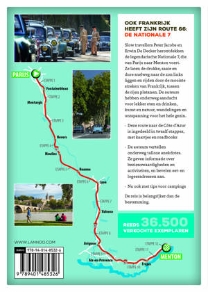 Slow travellers Peter Jacobs en Erwin De Decker herontdekken de legendarische Nationale 7, die van Parijs naar Menton voert. Ze laten de drukke, saaie en dure snelweg naar de zon links liggen en rijden door de mooiste streken van Frankrijk, tussen de rijen platanen. De auteurs hebben onderweg aandacht voor lekker eten en drinken, kunst en natuur, wandelingen en ontspanning voor het hele gezin.