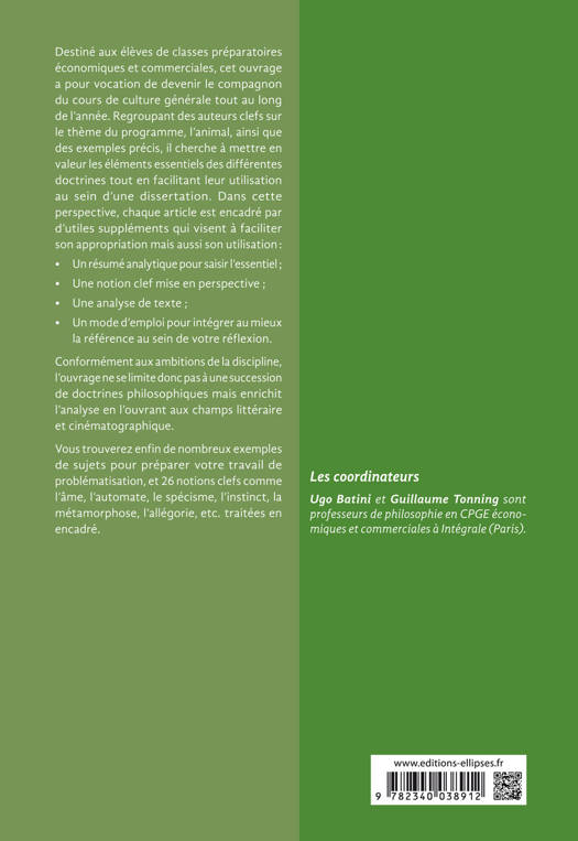 Destiné aux élèves de classes préparatoires économiques et commerciales, cet ouvrage a pour vocation de devenir le compagnon du cours de culture générale tout au long de l’année. Regroupant des auteurs clefs sur le thème du programme ainsi que des exemples précis, il cherche à mettre en valeur les éléments essentiels des différentes doctrines tout en facilitant leur utilisation au sein d’une dissertation.