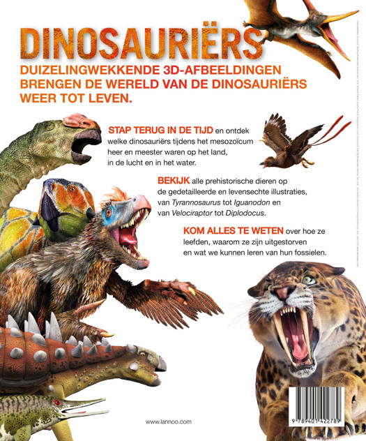 De duizelingwekkende illustraties brengen de wereld van de dinosauriërs weer tot leven. Stap terug in de tijd en ontdek welke dinosauriërs tijdens het mesozoïcum heer en meester waren op het land, in de lucht en in het water.