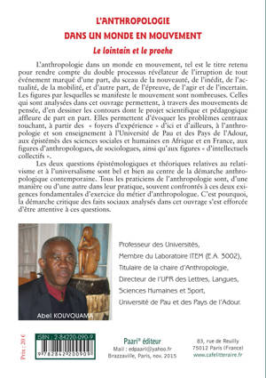L’anthropologie dans un monde en mouvement, tel est le titre retenu pour rendre compte du double processus révélateur de l’irruption de tout événement marqué d’une part, du sceau de la nouveauté, de l’inédit, de l’actualité, de la mobilité, et d’autre part, de l’épreuve, de l’agir et de l’incertain. Les figures par lesquelles se manifeste le mouvement sont nombreuses. Celles qui sont analysées dans cet ouvrage permettent, à travers des mouvements de pensée, d’en dessiner les contours dont le projet scientifique et pédagogique affleure de part en part. Elles permettent d’évoquer les problèmes centraux touchant, à partir des « foyers d’expérience » d’ici et d’ailleurs, à l’anthropologie et son enseignement à l’Université de Pau et des Pays de l’Adour, aux épistémès des sciences sociales et humaines en Afrique et en France, aux figures d’anthropologues, de sociologues, ainsi qu’aux figures « d’intellectuels collectifs ». Les deux questions épistémologiques et théoriques relatives au relativisme et à l’universalisme sont bel et bien au centre de la démarche anthropologique contemporaine. Tous les praticiens de l’anthropologie sont, d’une manière ou d’une autre dans leur pratique, souvent confrontés à ces deux exigences fondamentales d’exercice du métier d’anthropologue. C’est pourquoi, la démarche critique des faits sociaux analysés dans cet ouvrage s’est efforcée d’être attentive à ces questions.