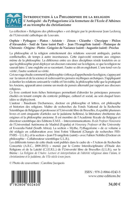 La philosophie et la religion entretiennent des relations souvent ambiguës, parfois conflictuelles, de temps à autre incestueuses. Cette équivocité remonte aux origines même de la philosophie. La différence entre ces deux disciplines réside toutefois en ce que la philosophie peut déployer un discours raisonné sur la religion, ce que la religion ne saurait faire. L'une englobe en se racontant ; l'autre se dit en englobant. L'une tend vers la vérité ; l'autre soutient sa vérité...