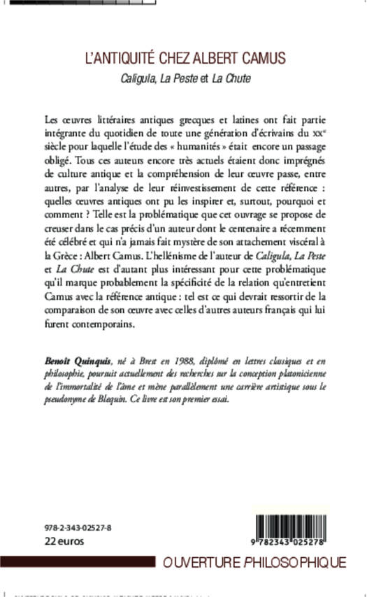 Les écrivains du XXè siècle, pour lesquels l'étude des "humanités" était encore un passage obligé, étaient imprégnés de culture antique ; la compréhension de leur oeuvre passe, entre autres, par l'analyse de leur réinvestissement de cette référence : quelles oeuvres antiques ont pu les inspirer, pourquoi et comment ? Telle est la problématique proposée dans cet ouvrage, dans le cas précis d'un auteur qui n'a jamais fait mystère de son attachement viscéral pour la Grèce : Albert Camus.
