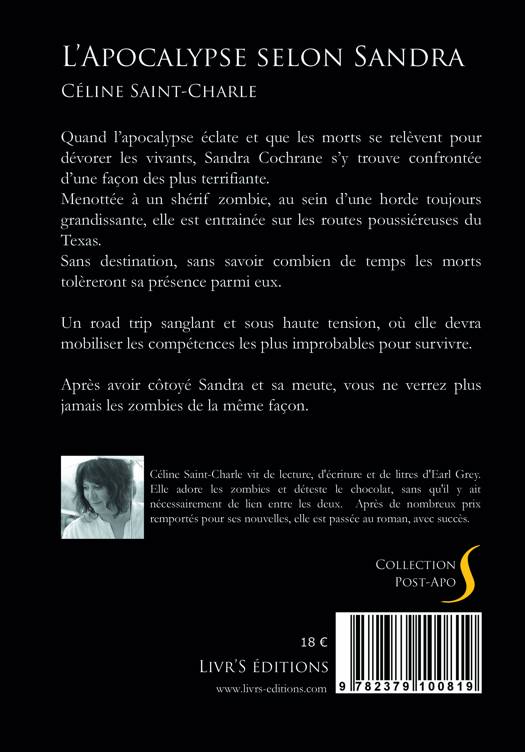 Quand l’apocalypse éclate et que les morts se relèvent pour dévorer les vivants, Sandra Cochrane s’y trouve confrontée d’une façon des plus terrifiante. Menottée à un shérif zombie, au sein d’une horde toujours grandissante, elle est entrainée sur les routes poussiéreuses du Texas. Sans destination, sans savoir combien de temps les morts tolèreront sa présence parmi eux. Un road trip sanglant et sous haute tension, où elle devra mobiliser les compétences les plus improbables pour survivre. Après avoir côtoyé Sandra et sa meute, vous ne verrez plus jamais les zombies de la même façon.