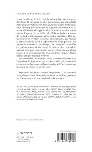 Lever de rideau. Ici une bretelle noire glisse sur une peau diaphane, là des yeux mi-clos quémandent un improbable pardon : parure et posture. Elles charment et abusent les sens, elles disent qui est le maître. Si le grand ordonnateur de ce manichéisme visuel s'appelle Shakespeare, nous ne sommes pas sur les planches du théâtre du Globe mais dans le centre de formation ultramoderne de la police madrilène. Des instructeurs y décryptent les codes élisabéthains, qui placent la satisfaction du désir à l'épicentre de notre psyché. Les agents sont formés à la technique des "masques" : identifier en quelques secondes la nature du désir le plus profond du suspect pour provoquer en lui une overdose du seul plaisir auquel il ne peut résister. On les appelle les "appâts", Diana Blanco est leur meilleur élément.