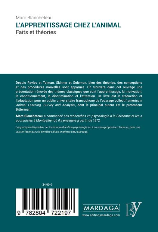 Depuis Pavlov et Tolman, Skinner et Solomon, bien des théories, des conceptions et des procédures nouvelles sont apparues. On trouvera dans cet ouvrage une présentation rénovée des thèmes classiques que sont l'apprentissage, la motivation, le conditionnement, la discrimination et l'attention. Ce livre est la traduction et l'adaptation pour un public universitaire francophone de l'ouvrage collectif américain